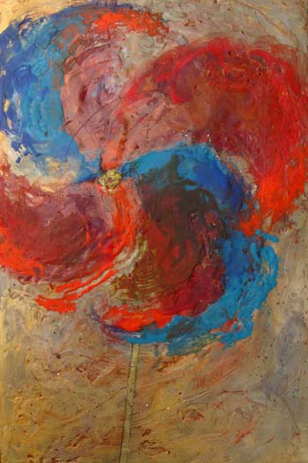 I often say that I want my paint surface to look edible. The process of encaustic painting, even more than oils, feels like the icing on a cake. I like the marriage of content and medium. In all of my work I love to make visual puns.